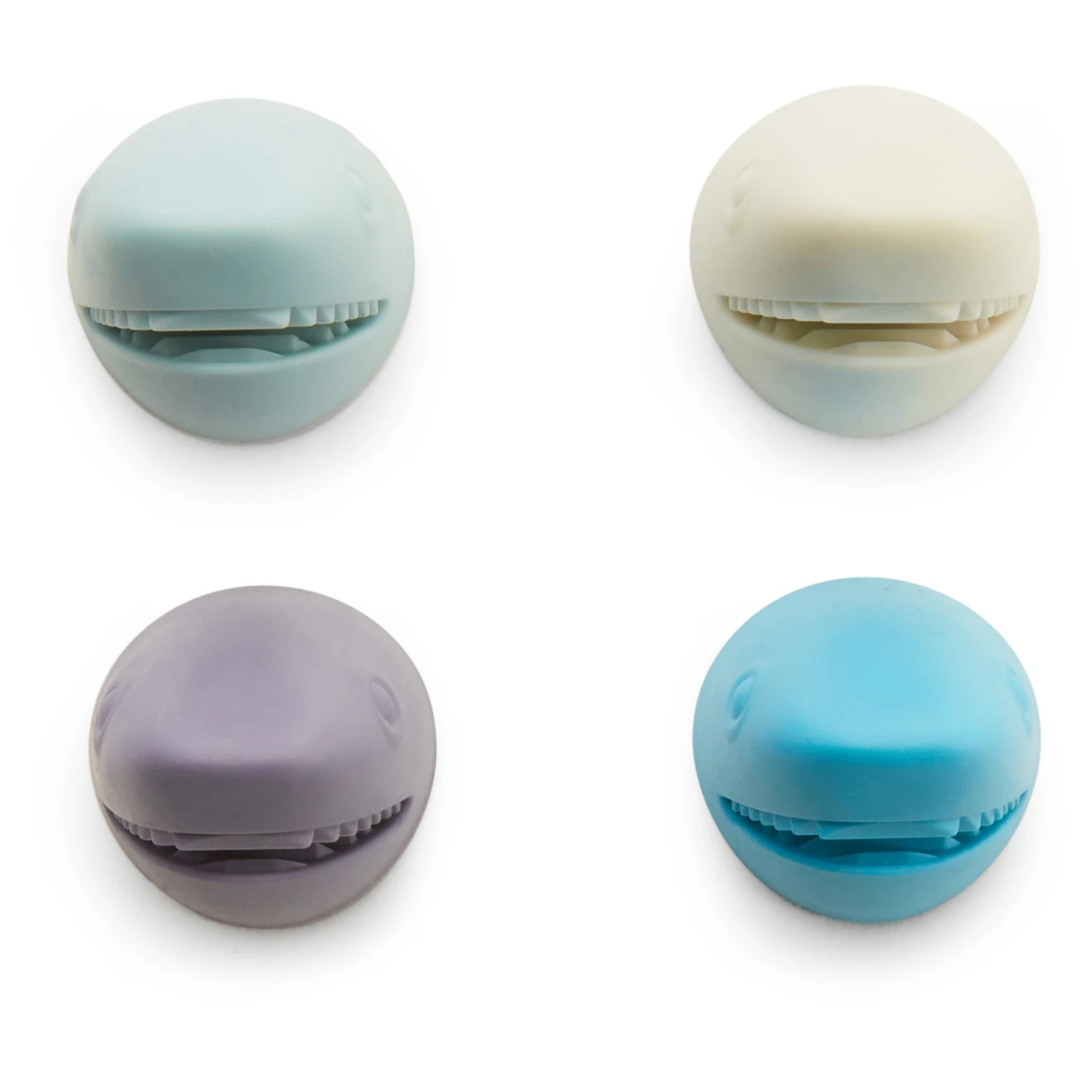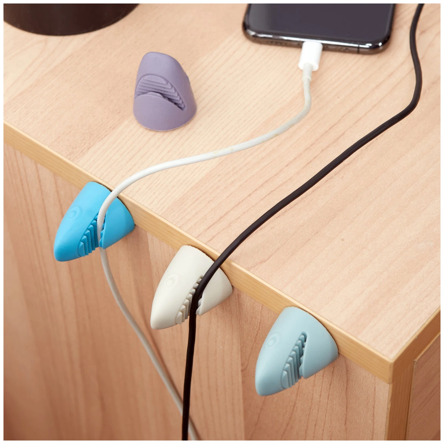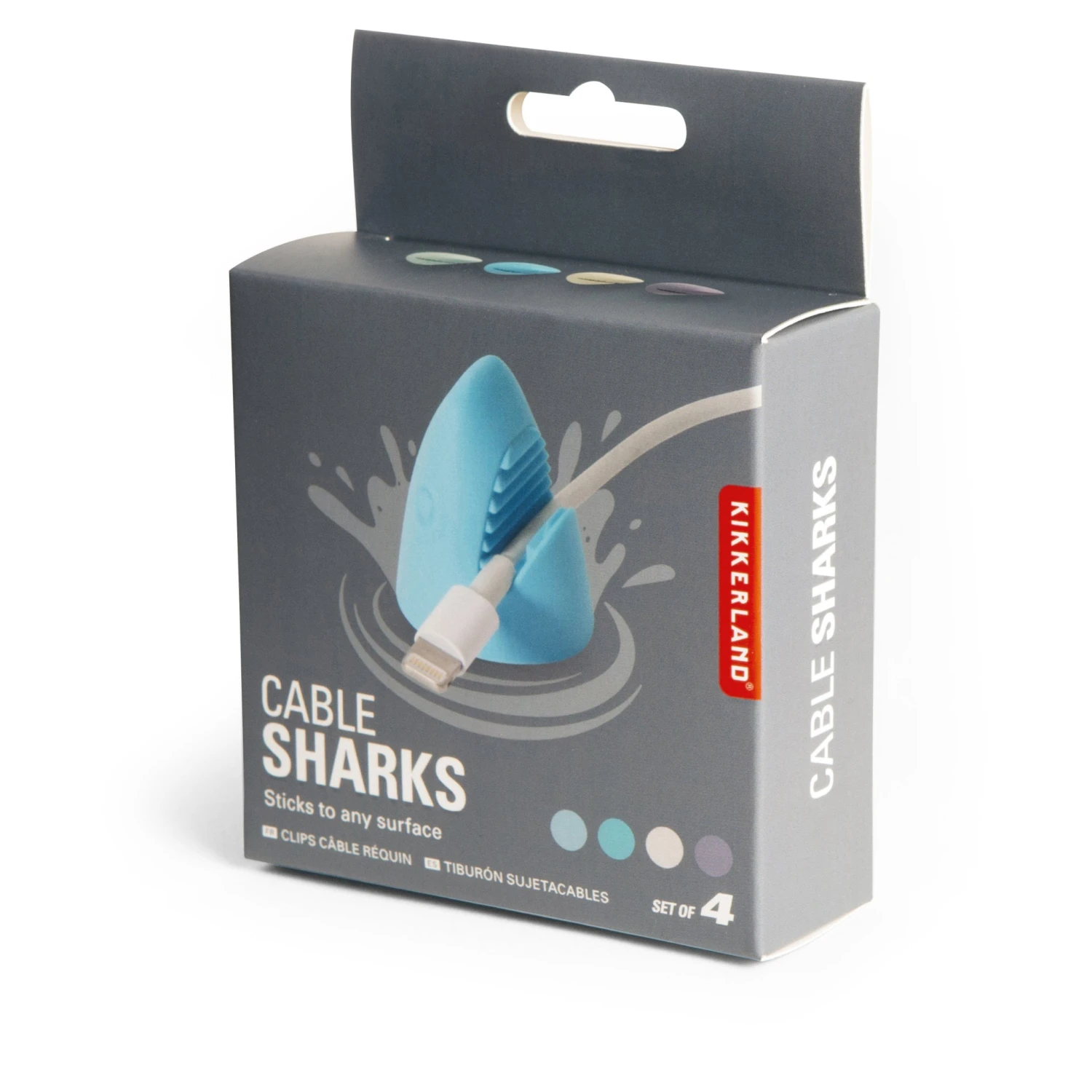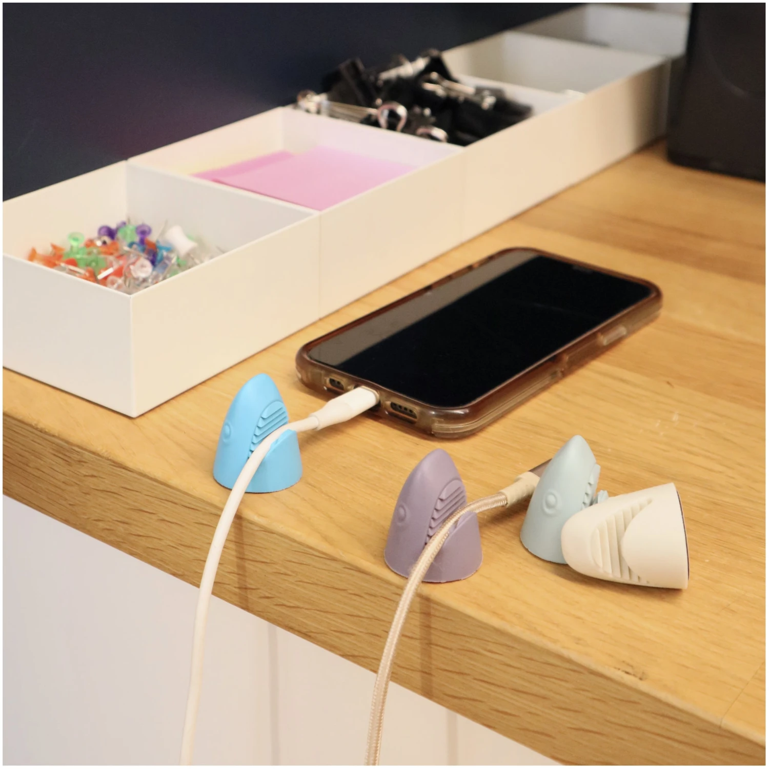 Swim through cable chaos with Cable Sharks! This 4 piece set shaped like hungry shark heads makes quick bites of tangled cords. Adhesive stickers keep ’em in place and peel off cleanly.