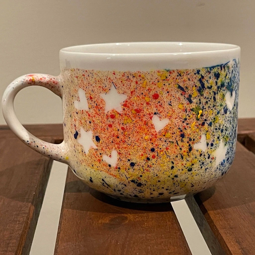 - Contains: ceramic mug, brush, shape stickers, and ceramic paint