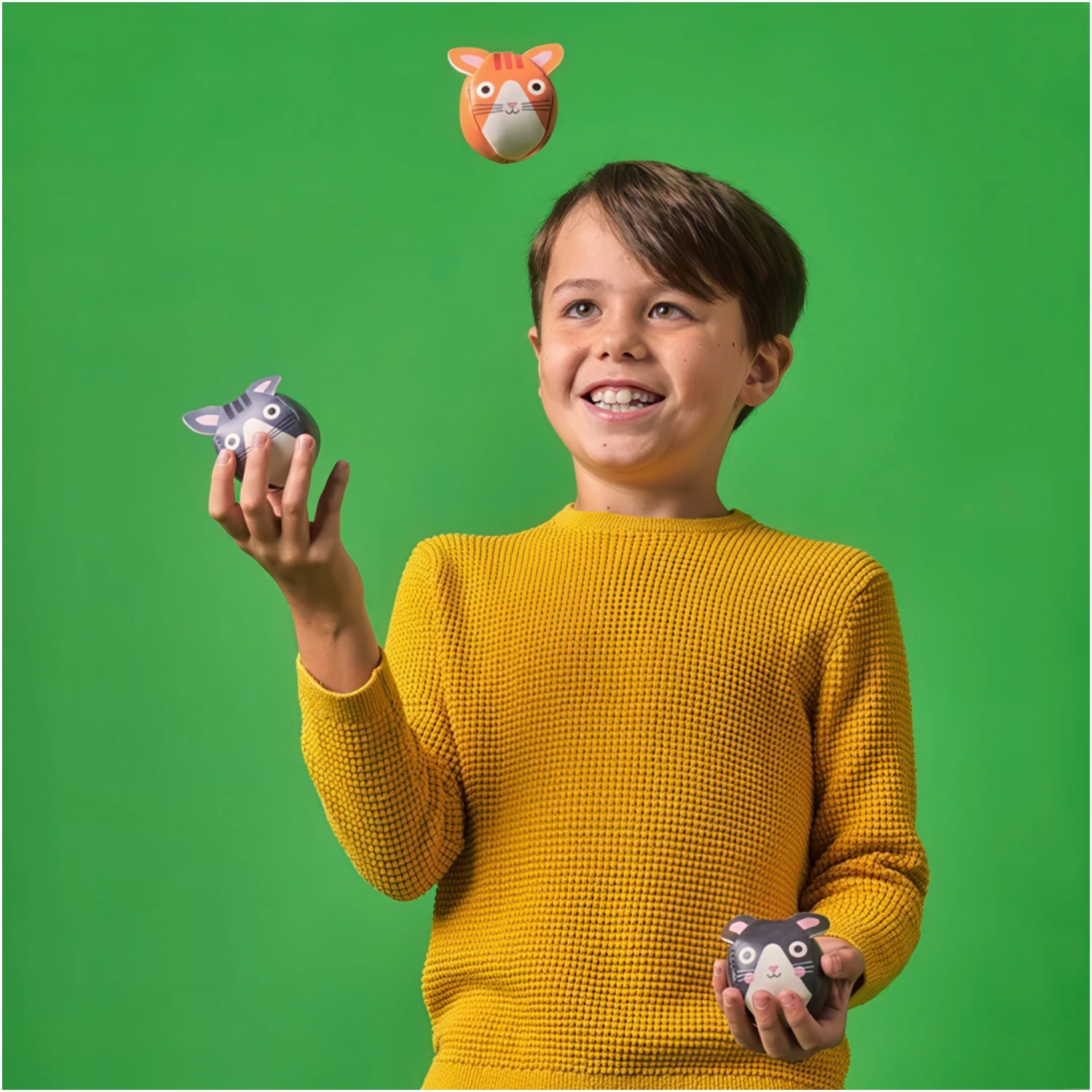 Step up your juggling game with the kidoki three cats juggling ball set—three weighted cat-shaped balls for purr-fect balance and endless fun!