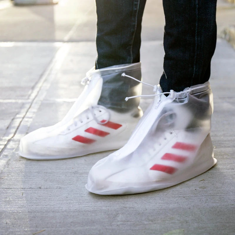 DON’T get caught with dirty shoes! Easily slip these waterproof covers over your shoes, zip them and tighten the drawstring to keep your feet dry and your shoes clean. Reusable design features durable tread on bottom. Always keep a set at home for emergencies.