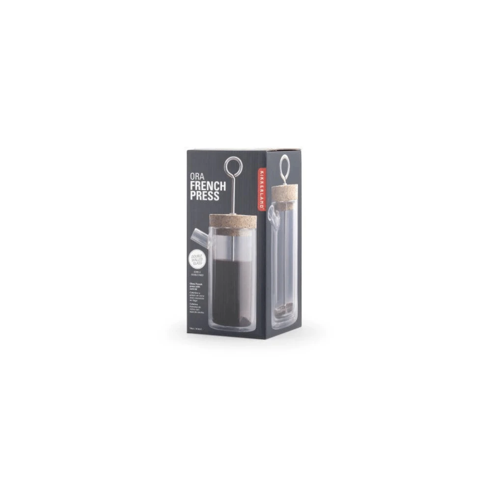 Slowly pour hot water over ground beans and luxuriate in the aroma of fresh coffee as it steeps in your Ora French Press. Features include double walled glass body to keep in heat, cork stopper for an aromatic experience every time and a convenient spout to pour a perfect cup.
