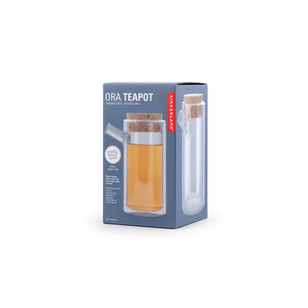 The Ora Teapot is a double walled glass teapot with a removable wire tea infuser to prevent leaves from pouring in your cup.