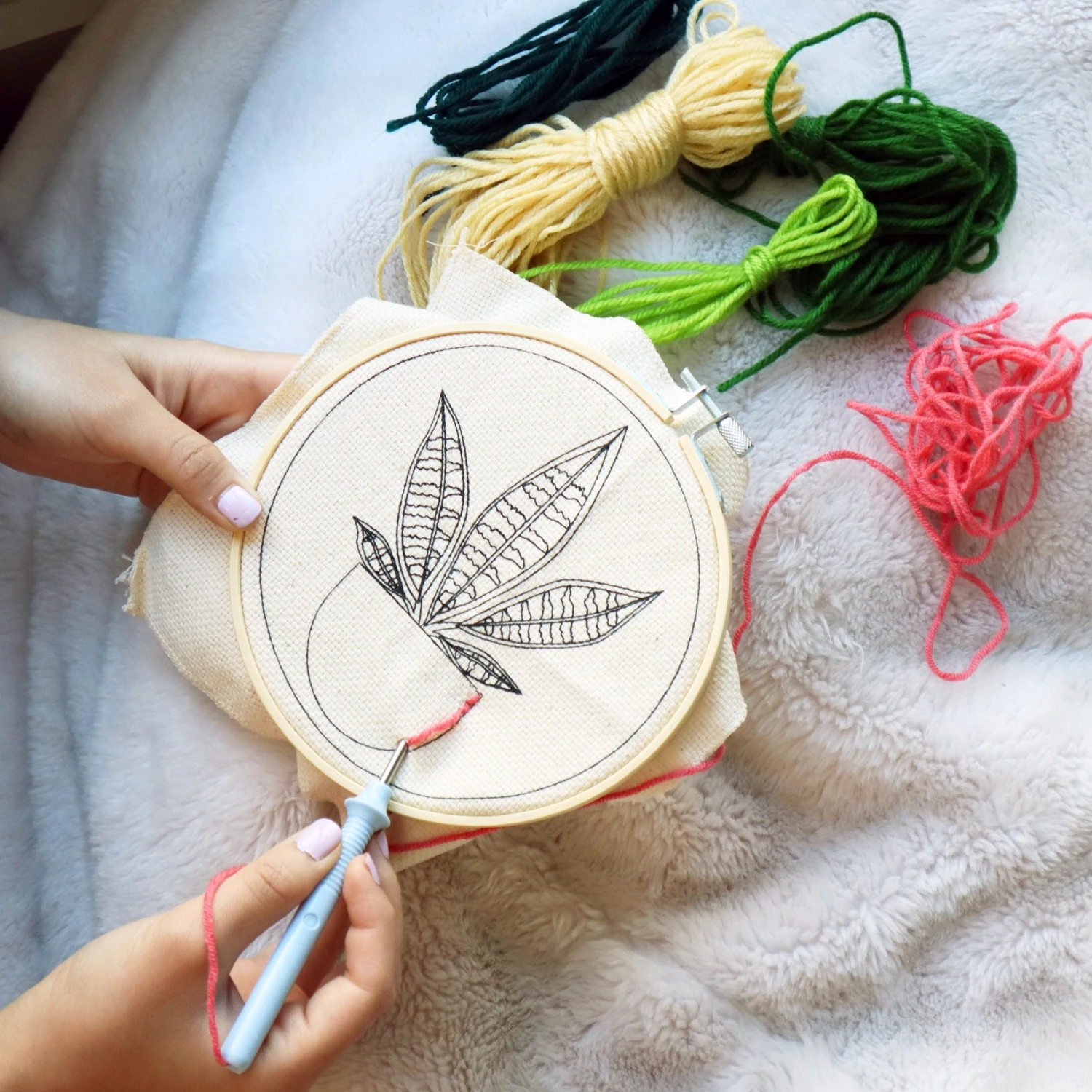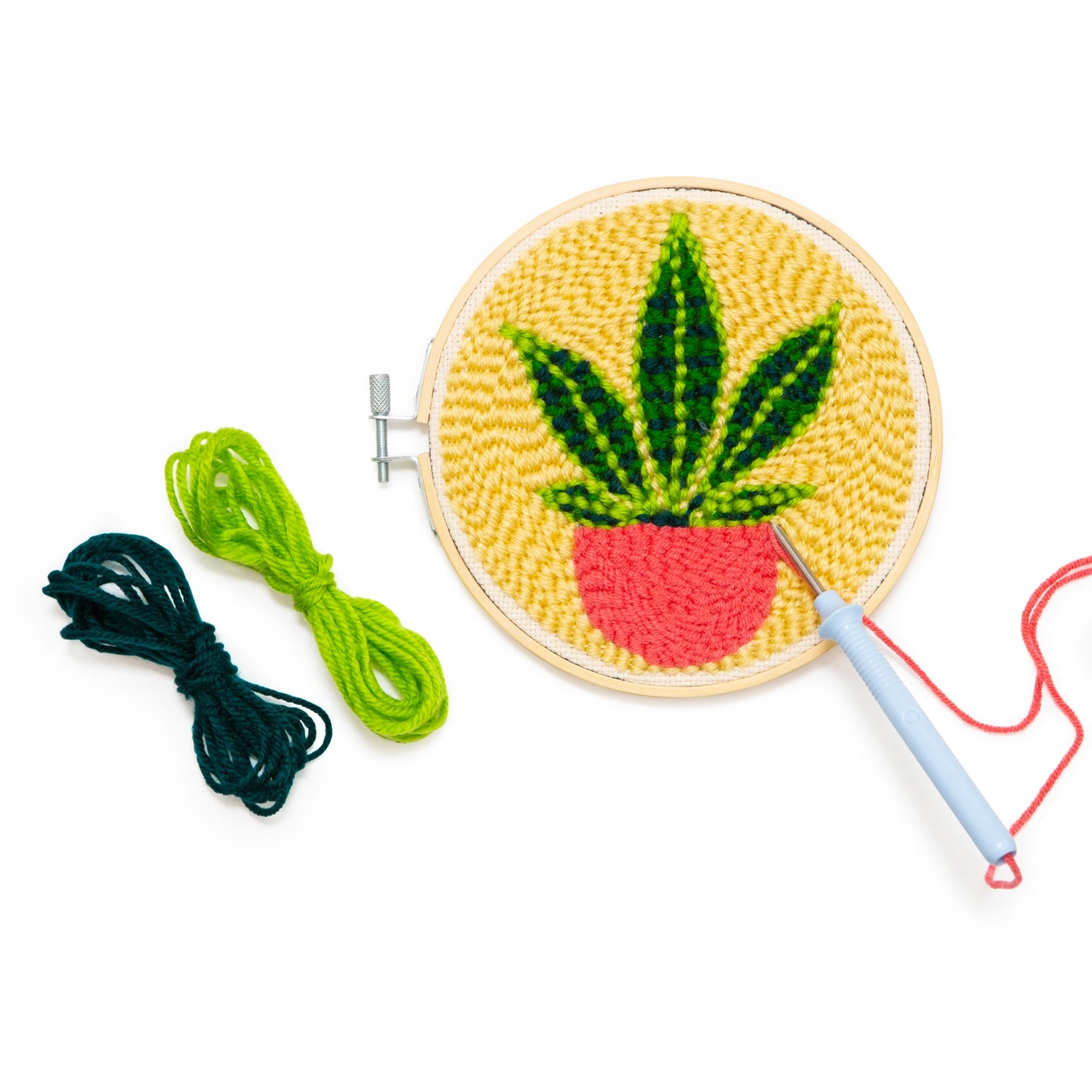 Unleash creativity with the Plant Punch Needle Kit: includes bamboo hoop, punch needle, and threader. Perfect for crafting your mini tapestry. Ideal for beginners!