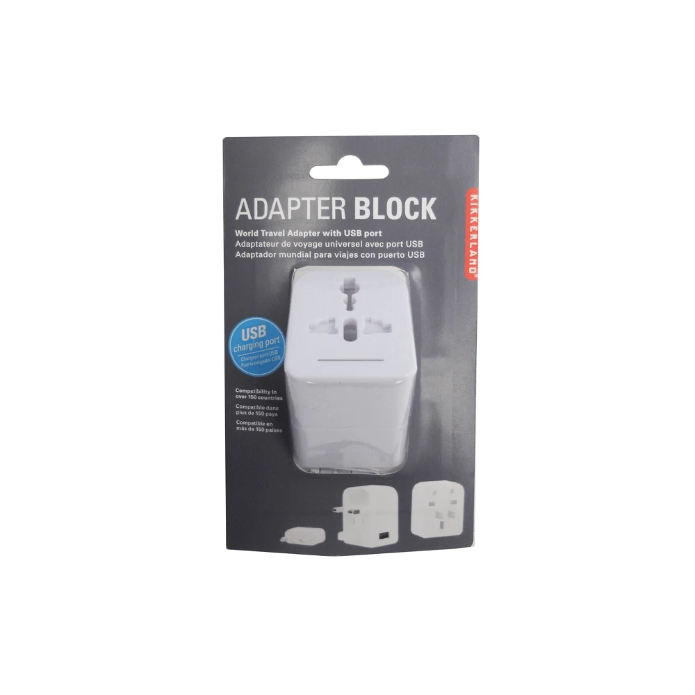 Pack this compact block in your carryon and you’ll never be without power. Compatible in over 150 countries, with USB outlet.