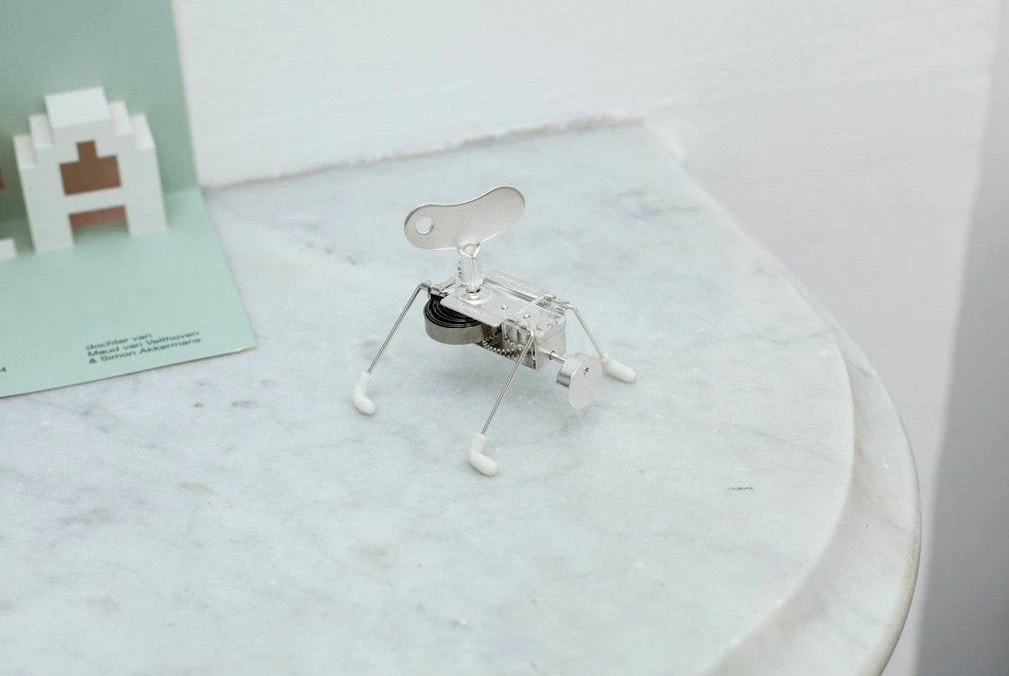 Spinney was created in deepest New Jersey, in the basement of a turn of the century Arts and Crafts house. Essentially, Spinney is Critter’s baby; it has a bigger key, bigger booties, and very short legs. The big surprise was, by reducing the size of the legs, and giving Spinney a bit more weight on top it behaved more like a kid, more energetically, while Critter, by comparison has a more adult attitude when we put them in action side by side.